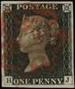 1840 1d black Plate 3 (HJ) with 4 margins and neat red MC, a fine example from this difficult plate.