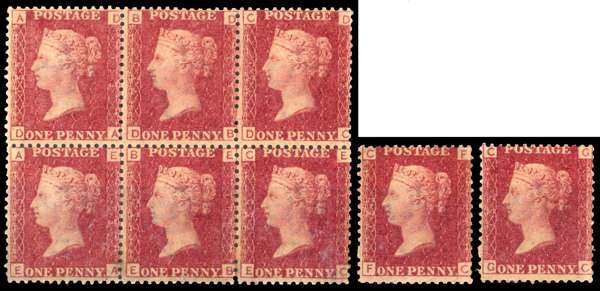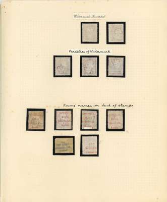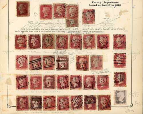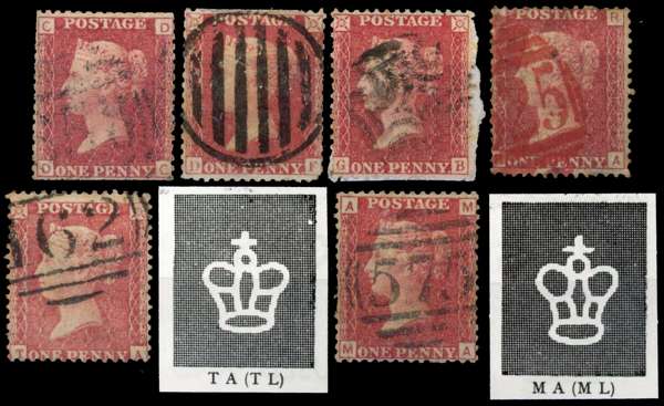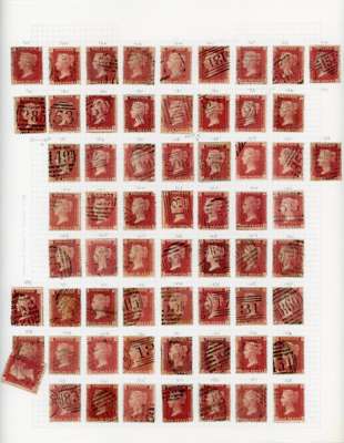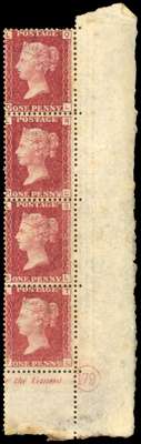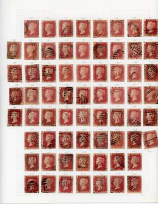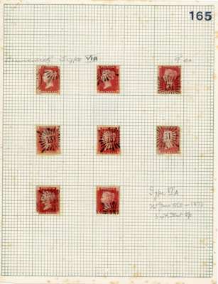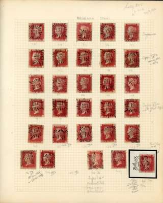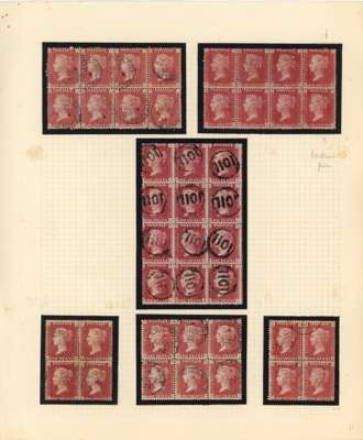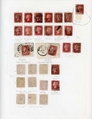 1864 1d Plate numbers collection including a run-through to Plate 225 (fine other than minor crease to corner perf); various others on leaves, cards etc including two imprimaturs, mint corner strip of five with Plate 179, four mint blocks with Plate 153 block of six, Specimen, used blocks including one of twenty, MA error of watermark used, also 1d Stars TA error of watermark; some cancels noted