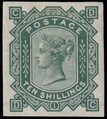 1878 10s greenish grey Plate 1, lettered DC. Imperforate imprimatur example, large part o.g., very fine. Philatelic Foundation Certificate (1968). SG 128, £35000
