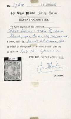 1884 5s rose on blued paper. Mint example with sweated gum. Good appearance, with RPS Certificate (1952) not mentioning the gum issue. Ex Cyriax. SG 176, £12,500