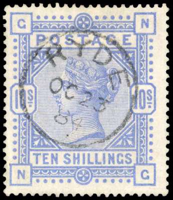 1883 10s cobalt, very fine used with Ryde CDS of OC 23 84. A fresh example of this rare shade, with fine colour. BPA Certificate (1986). Ex Cyriax. SG 182, £7500