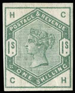 1884 1s dull green, imperforate. A fine example with large part o.g., accompanied by a BPA Certificate (2011). Extremely rare. SG 196a, £5500