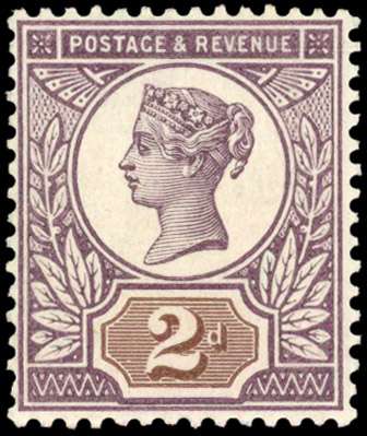 1887 2d Jubilee perforated colour trial in purple and brown, no watermark, large part o.g. For SG 199