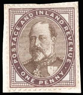 1901 1d composite ‘paste-up’ essay made from the frame of the Victorian 1d lilac, with a lithographed three-quarter portrait of King Edward VII pasted in; mounted on card and cut to slightly large than stamp size. Fine and very rarem believed one of just two or three in private hands. SG 219 essay
