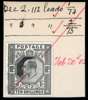 1902-10 KEVII 10s die proof, stamp-sized in black on glazed card from DLR striking book piece (56x49mm) annotated ‘Dec 2. 112 leads 1/72 2/75' very fine and rare. Unique. SG 265var