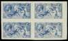 1913 Waterlow 2s6d Seahorse colour trial in ultramarine. Imperforate block of four, marginal at right, on thin ungummed “JAS WRIGLEY LD-299” paper, light creasing as often on this paper A striking and rare multiple. For SG 399