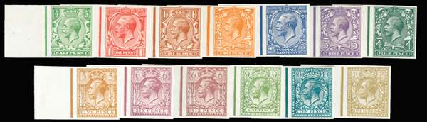 1924-26 ½d-1s Definitives (watermark Block Cypher). Superb unmounted o.g. set of thirteen left-marginal imperforate imprimaturs, including the two 6d values (ordinary + chalky papers), each with "BPMA" handstamp on reverse. Very rare.