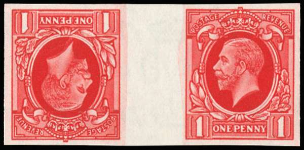 1934 1d scarlet (Intermediate format). Superb unmounted o.g imperforate tête-bêche gutter pair of imprimaturs with "BPMA" handstamps on reverse. Scarce.