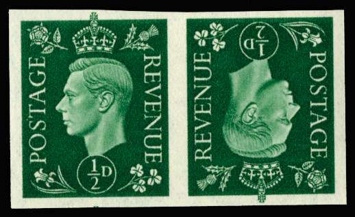 1937 ½d green (Dark colours). Superb unmounted o.g imperforate tête-bêche pair of imprimatur with "BPMA" handstamps on reverse. Very scarce.