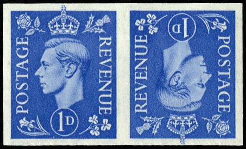 1951 1d light ultramarine (new colours). Superb unmounted o.g imperforate horizontal tête-bêche pair of imprimaturs with "BPMA" handstamps on reverse. Scarce.