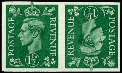 1951 1½d pale green (new colours). Superb unmounted o.g imperforate horizontal tête-bêche pair of imprimaturs with "BPMA" handstamps on reverse. Scarce.
