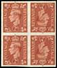 1951 2d Pale Red-brown (New colours). Superb unmounted o.g imperforate tête-bêche block of four imprimaturs with "BPMA" handstamps on reverse. Scarce.