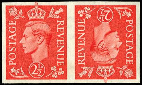 1951 2½d Pale scarlet (New colours). Superb unmounted o.g imperforate horizontal tête-bêche pair of imprimaturs with "BPMA" handstamps on reverse. Scarce.