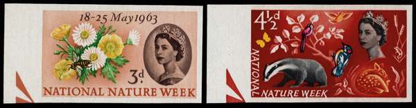 1963 3d-4½d National Nature Week (Ordinary). Superb unmounted o.g. left hand marginal set of two imperforate imprimaturs, each stamp with a "BPMA" handstamp on reverse. Scarce.