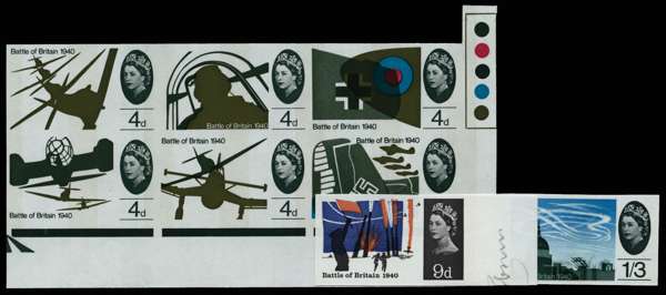 1966 4d-1s3d Battle of Britain (Phosphor). Superb unmounted o.g. marginal set of eight imperforate imprimaturs (4d value in se-tenant block of six with "Traffic Lights" at right), each stamp with a "BPMA" handstamp on reverse. Scarce.