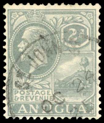 1921-29 Wmk Script, 2d grey, variety watermark inverted, used, showing St. Johns cds for OC 24.25, one short perf at top, otherwise fine, still one of the rarest stamps of Antigua with few examples known. SG 70a £2500