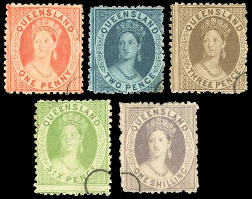 QUEENSLAND 1895 official reprints all with part circle specimen cancels