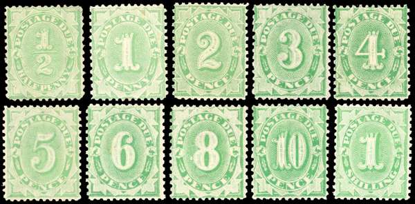 Postage Dues. 1902-4 set to 1s o.g., ½d no gum but otherwise generally good. Compound perf save for 5d perf 11½, 12. SG D17/31, £1318