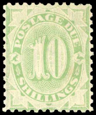 Postage Due. 1903 10s dull green, perf 11. Large part o.g., BPA Certificate (2014); fine and very scarce. SG D43, £2250