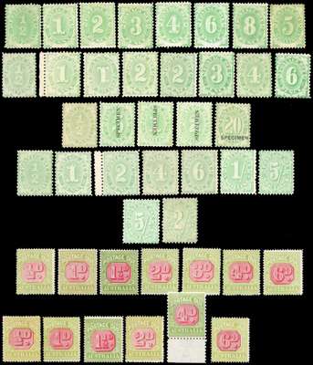 Postage Dues. 1902-60 superior mint balance group with 1902 set (fair only), SG D34 (two, one not fine, this with clear RPS Certificate), 35 and w, 36 and w, 37, 38w and 40; four Specimens including D44s; D53-7 set; D58, 59 (2) and 60; D91-8, 112-128 and 1953-60 range with some unmounted, such as the difficult D130a. A valuable collection