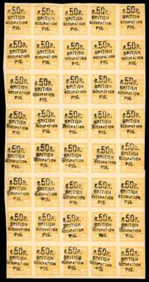 1920 50r on 50k yellow, ‘50 cut’ block of 50 (5 x 10) in black mint never hinged, a couple of light tones not detracting from a fine multiple