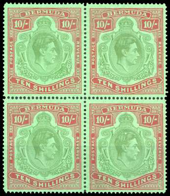 Bermuda SG 119b, bd, be 10s in mint block of four