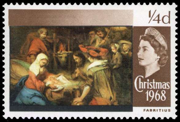 1968-69 Christmas ¼d brown, showing variety GOLD OMITTED, mint, unmounted o.g., A fine example of this error. Offered with normal for comparison. SG 215a, £275.