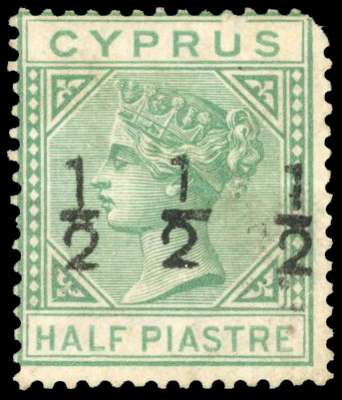 Cyprus SG 25a var 1882 ½ on ½pi emerald-green surcharge double