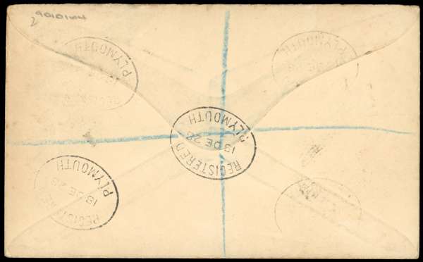 South Shetlands: 1928 (NO 4) cover to Blackburn bearing single franking 2d tied by single code C double-ring date stamp, South Georgia registration at left, reverse with five oval Registered Plymouth date stamps of 18 DE.
