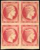 1861 Large Hermes Heads, Paris Print 80l carmine in bottom marginal block of four fresh large part o.g., hinged only at top of block, some slightly wrinkled gum, some very slight yellowing towards bottom left, good to huge margins all round, a fine and desirable multiple