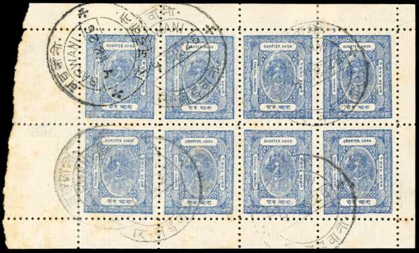 I.F.S. Barwani SG 19 used complete pane of 8