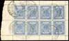1925 ¼a blue in complete sheet of 8 on vertically laid batonné paper, perf 11, used, showing numerous strikes from bilingual cds, few minor tones, an attractive and scarce piece. SG 19