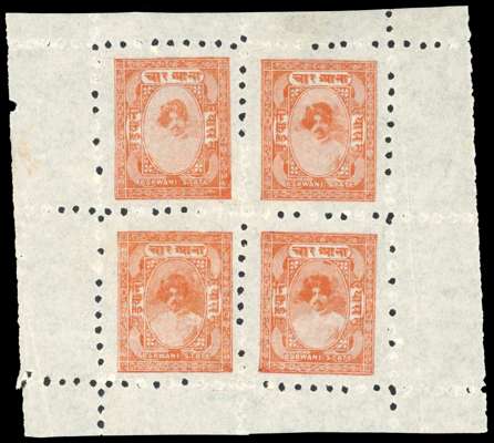 I.F.S. Barwani SG 22 4a in complete pane of 4 unused