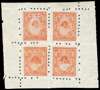 1927 4a orange-brown in complete pane of 4, on thin brittle wove paper, perf 7, unused without gum as issued, diagonal crease affecting right margin, well clear of adhesives, a rare pane. SG 22 cat £720+