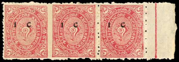 I.F.S Travancore SG 50a imperf between horiz pair mint