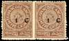 1932 1c on 5ca chocolate, surcharge type 15, watermark type C (upright) imperforate between horizontal pair, mint large part o.g., fine. SG 57a cat £275