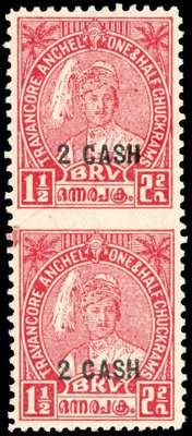 I.F.S Travancore SG 73fa imperf between & compound perf mint