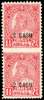 1943 2ca on 1½ch scarlet, surcharge type 29, compound perf 11x12½ (at foot) additionally showing variety imperforate between vertical pair, mint large part o.g. fine. SG 73fa cat £300