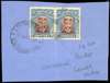 1922-4 3s reddish brown and greenish blue Head Die IIIB, perf 14, white paper. Horizontal pair used on blue piece, Livingstone CDS of 11 OCT 24, right stamp with R2/10 collar flaw. Ex Spivack. SG 304