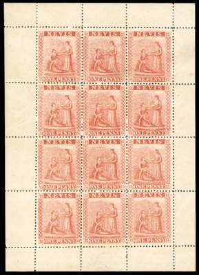 Nevis 1871-78 1d pale rose-red, complete sheet of 12, SG 15 ‡