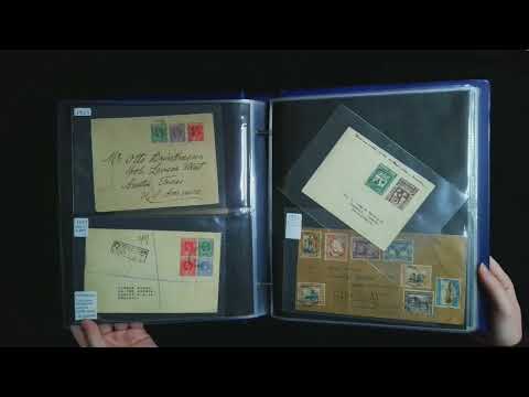 Postal History. Blue SG Major cover album with 41 covers and cards plus 9 postal stationery used items. Includes 1883 1d reg. stationery card to Germany with added ½d, 1d, 1½d; various registered to Europe with some better frankings, such as Harwood 1924 with 10d, 1931 7d plus 10d; 1934 with eight Wilberforce values to 2s (cover with fold); 1935 Jubilee on flown FDC, useful lot with a couple of later covers opened out for display