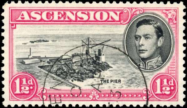 Ascension SG 40fb 1952 1½d cut mast and railings used