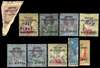 1893-4 surcharges used group (10), with faults but some of good appearance. SG 7 on small piece, a little foxing, clear Brandon Certificate (1990); SG 9 slightly faded, toned; SG 11, one foxed perf; SG 17 slightly blunt corner; SG 20 washed; SG 21, 35 and 37 all with thins; SG 57 foxed, and SG 59 on tiny piece, toned. Useful reference. Catalogued £2900