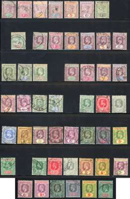 1910-1912 used collection (51, basic stamps complete less 1904 £25), one of each. Condition and cancellations generally good, with three dubious or faked postmarks noted (SG 9, 49 and 50); the 1900 2s6d very fine, with part of an additional cancel at base