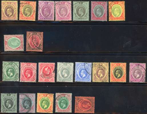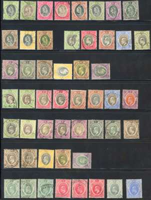 1901-12 used collection (73). Ostensibly complete per Part 1 basic stamps, with most shades, papers and Dies, plus 1912 1d inverted watermark. However, the following have faked cancels; SG 18, 20, 32, 43 and 56, with a few others dubious