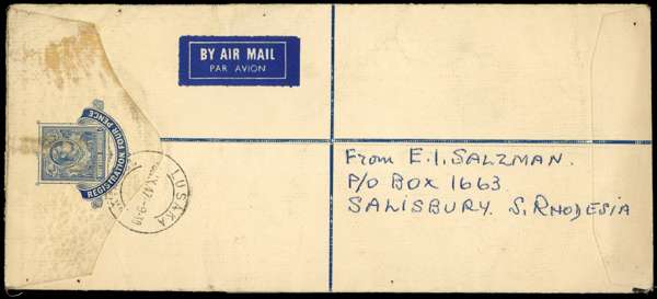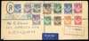 1947 4d registered envelope (230 x 100mm) from Lusaka with 5.xi.47 CDSs to London. Bears the set as available (12 values) less the 10/-, 6d with missing corner. The envelope with faults but quite presentable from the front. SG 25/45