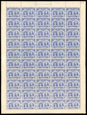 1910-13 2½d bright ultramarine sheet of fifty, two folds (one with small reinforcement to selvedge, which also has four areas of adhesion). Stamps unmounted, just one with a small toned area. Scarce. SG 131a
