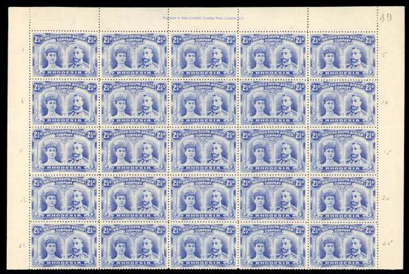 1910-13 2½d bright ultramarine upper five rows of sheet, large part o.g. with just two stamps mounted. A few bends but generally fine. SG 131a