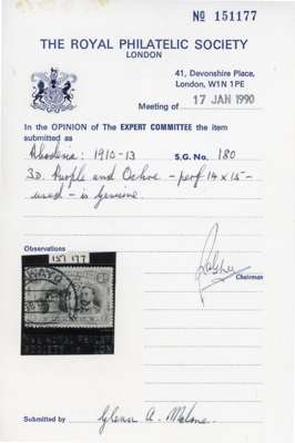 1910-13 Double Heads used. Perf 15 ‘set’ with additional shades (2s dull blue colour suffusion, 2s light blue missing perf); 3d perf 14 x 15 (RPS Certificate, 1990); perf 13½ as per Part 1 with extra ½d. Mixed condition but mainly good. SG 167/185a
