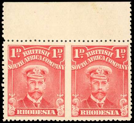 Rhodesia SG 195a 1913-19 1d rose-red horizontal pair error Imperf Between